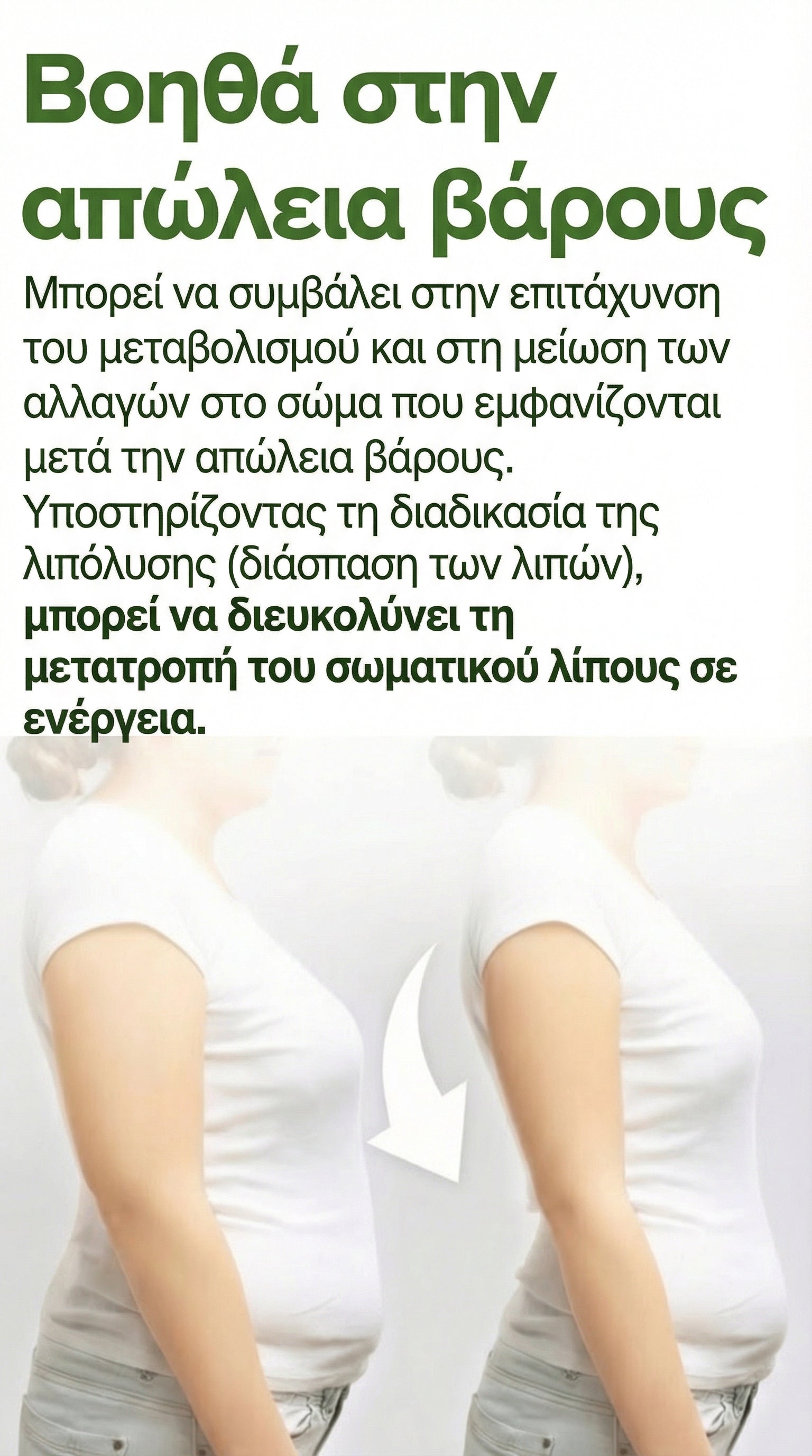 Υποστηρίζει τη φυσική διαδικασία λιπόλυσης (διάσπαση λιπών).